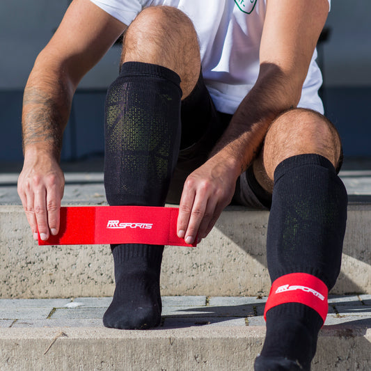 RR Sports - Schienbeinschonerhalter Fußball für Herren, Damen und Kinder Rot