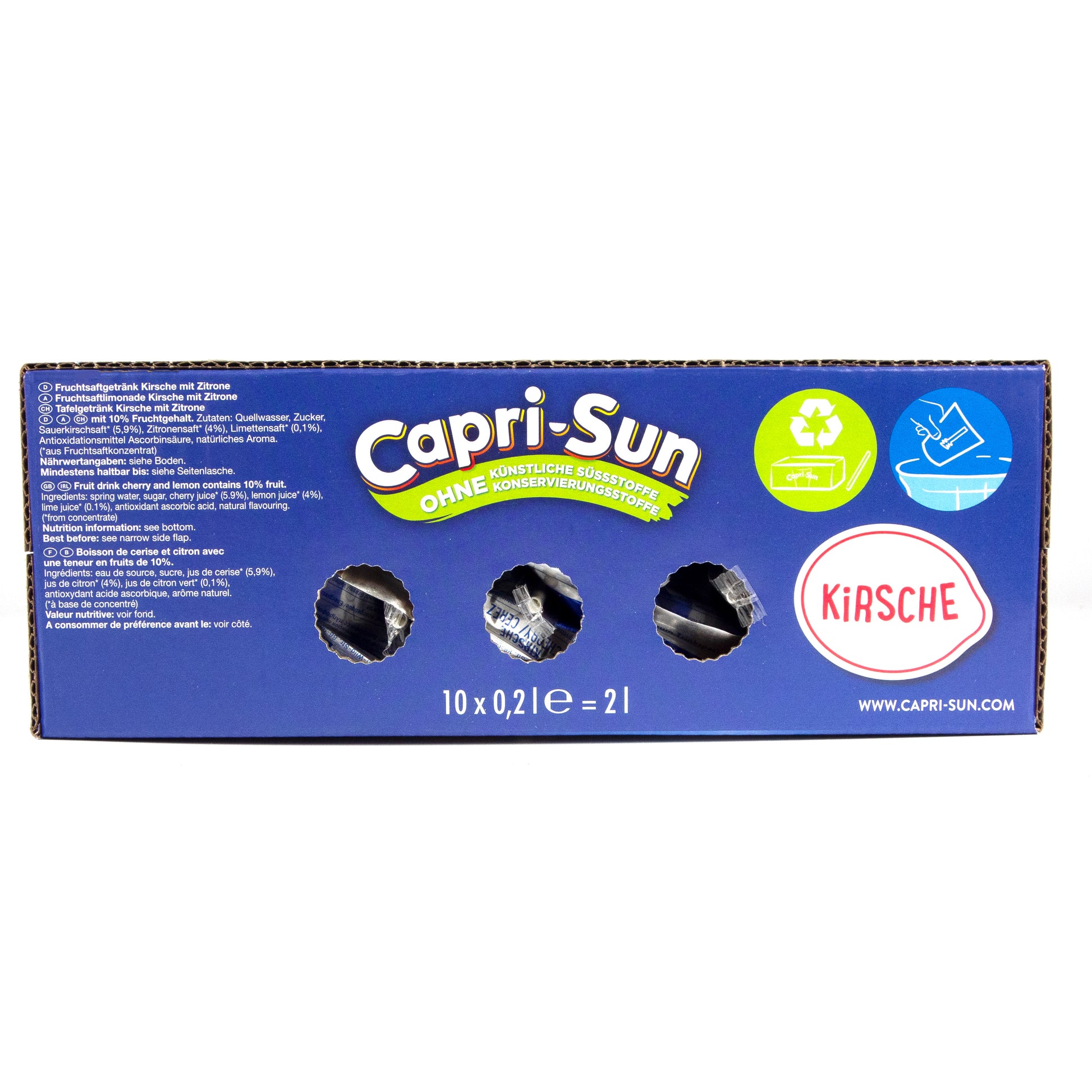 - Capri-Sun Kirsche. Fruchtig süß und einfach lecker: Mit Capri-Sun Kirsche schmecken die Pausen ganz besonders gut. Der rote Held des Pausenhofs!