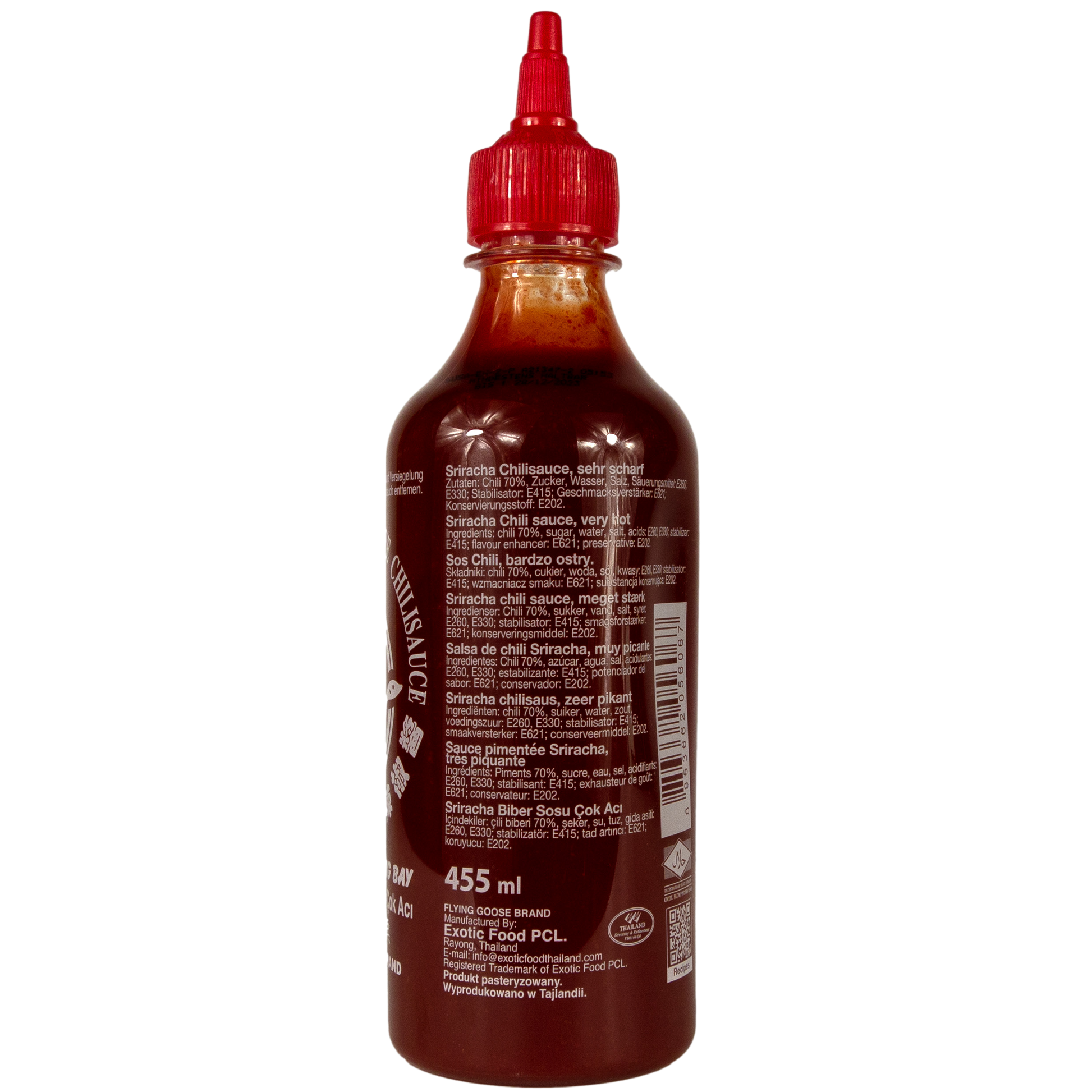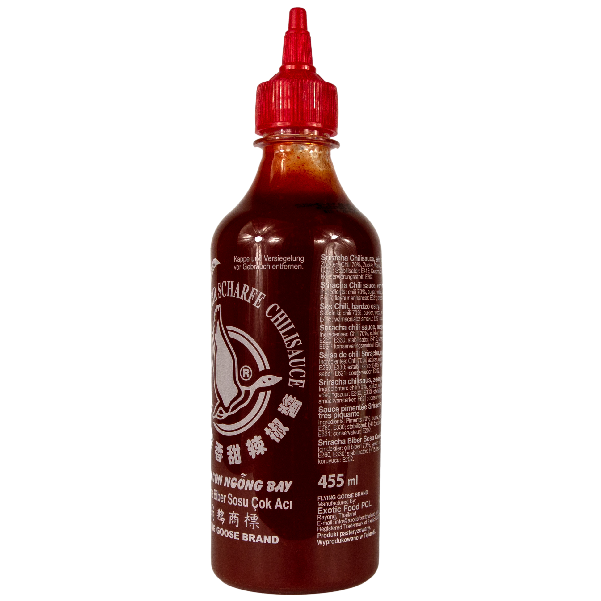 FLYING GOOSE - Sriracha extra scharfe Chilisauce rote Kappe aus Thailand 455 ml