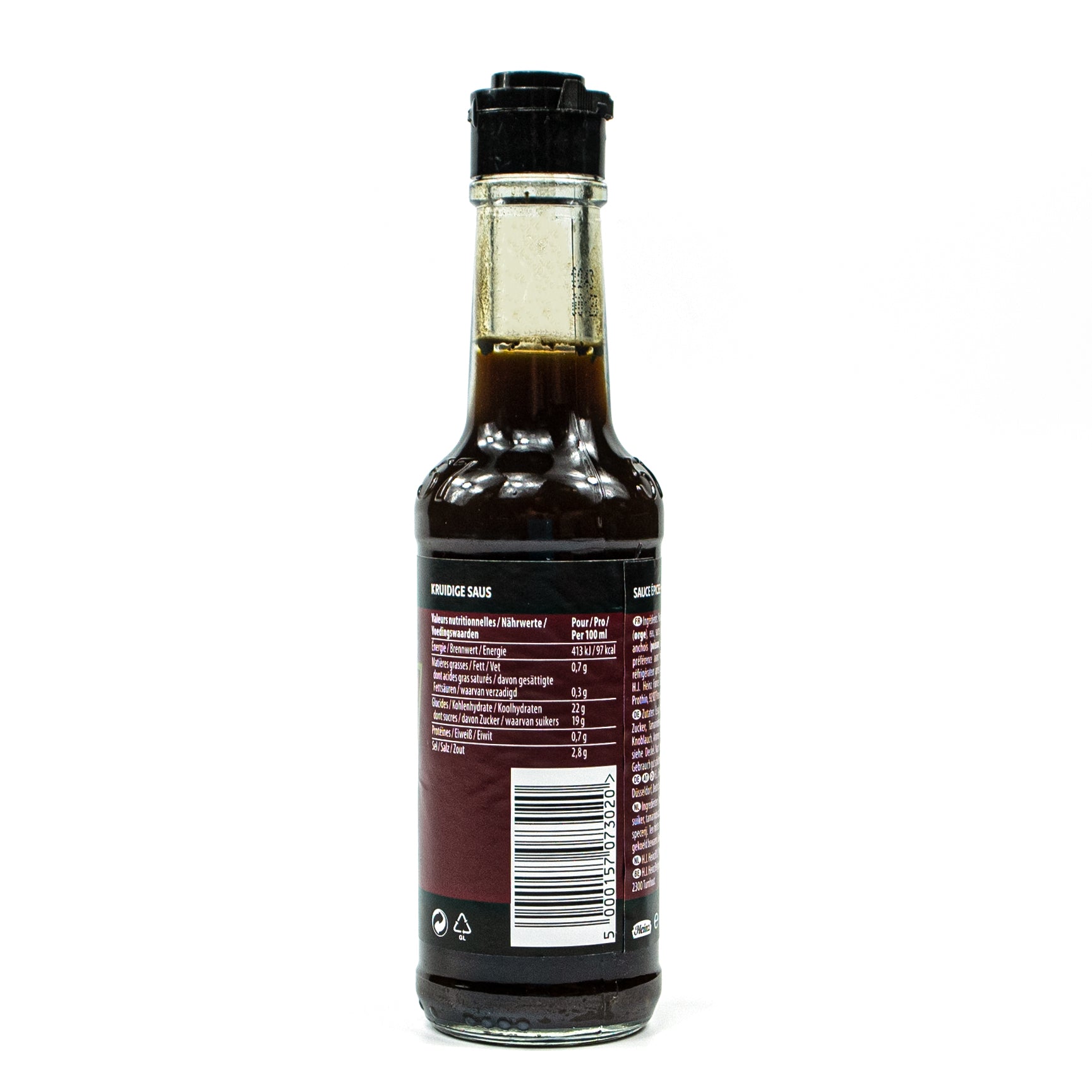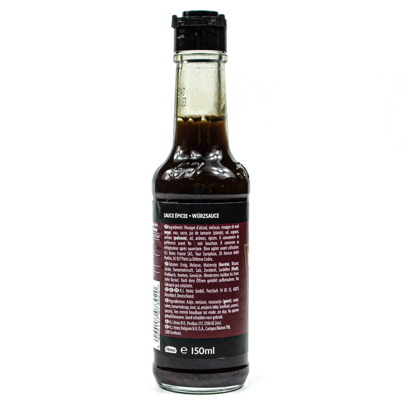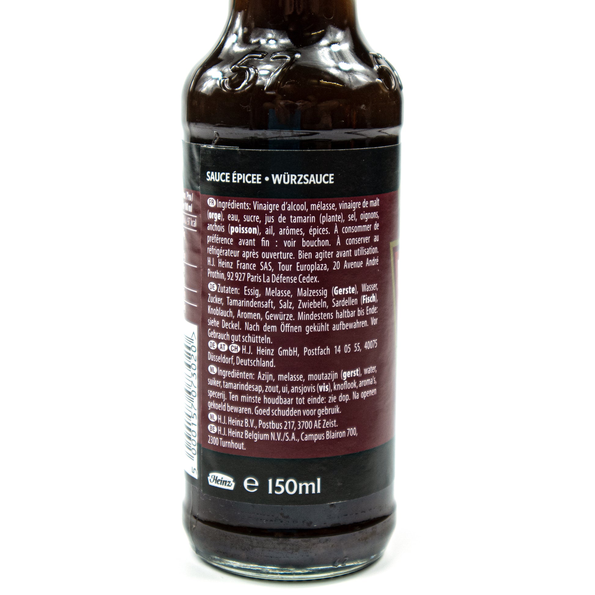 Zutaten: Essig, Melasse, Malzessig (Gerste), Wasser, Zucker, Tamarindensaft, Salz, Zwiebeln, Sardellen (Fisch), Knoblauch, Aromen, Gewürze