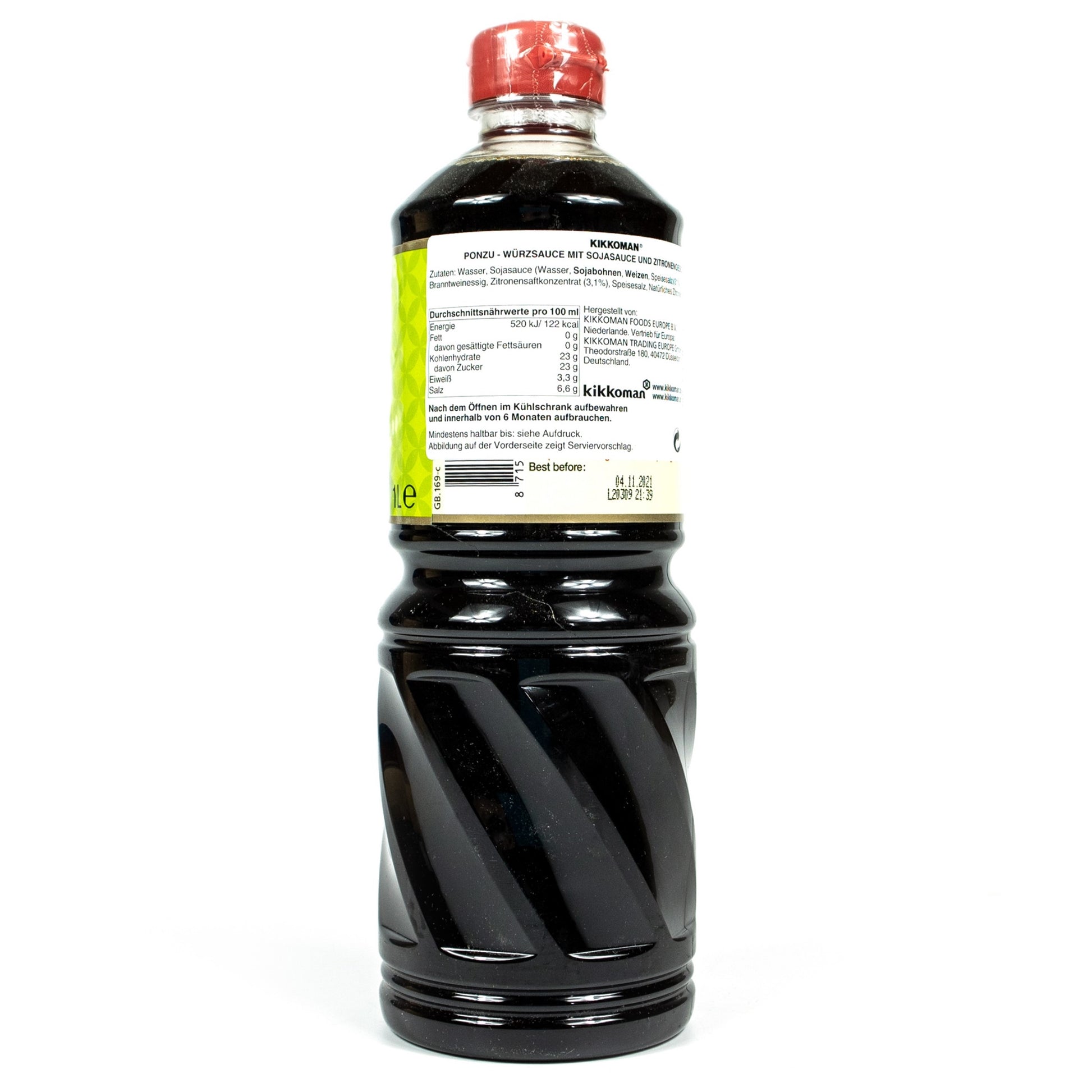 Zutaten: Wasser, Sojasoße (Wasser, Sojabohnen, Weizen, Speisesalz) 31%, Zucker, Branntweinessig, Zitronenkonzentrat 3,1%, Speisesalz, natürliches Zitronenaroma, Hefeextrakt