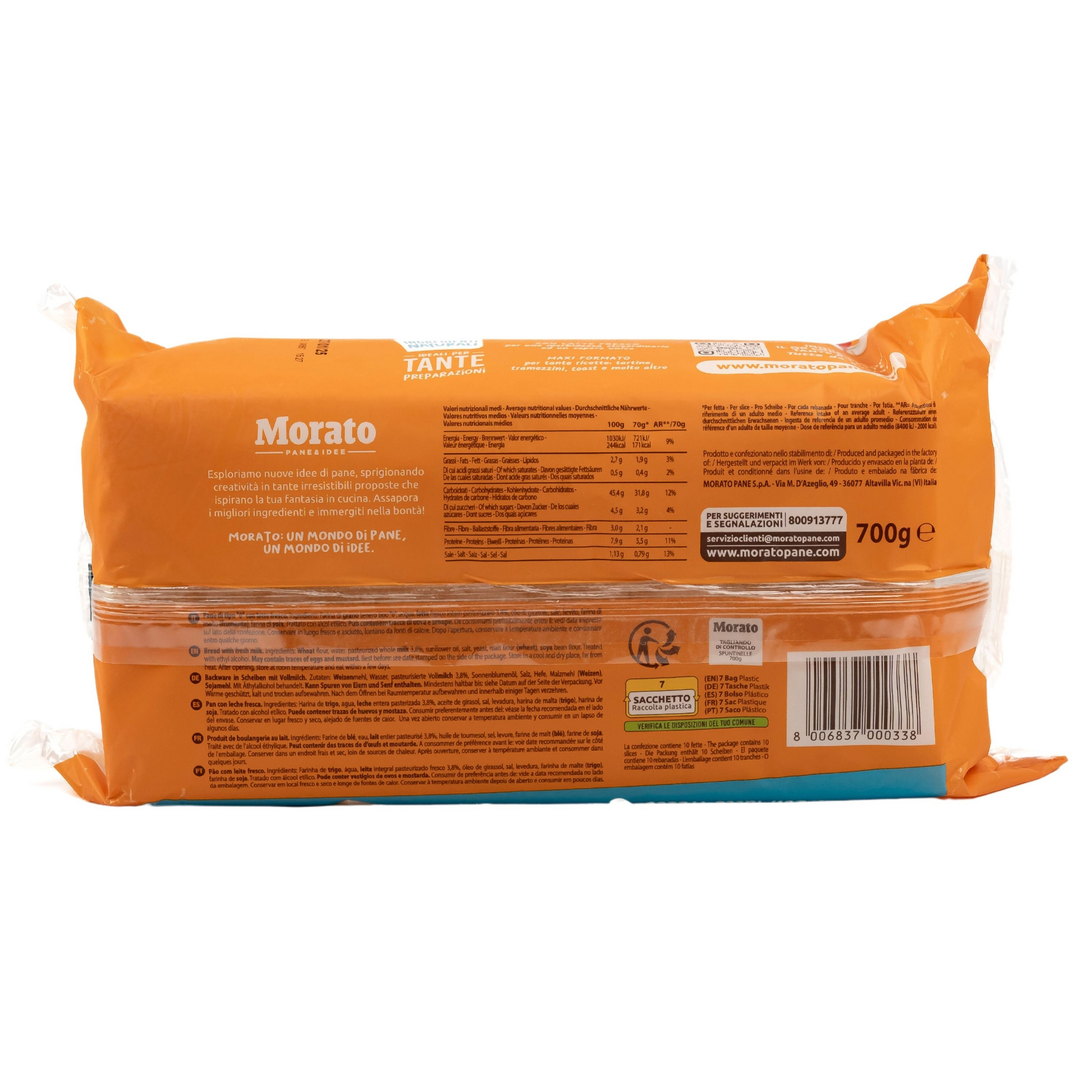 Morato - Original italienisches Spuntinelle Weißbrot Tramezzini (Toast ohne Rand) 700g
