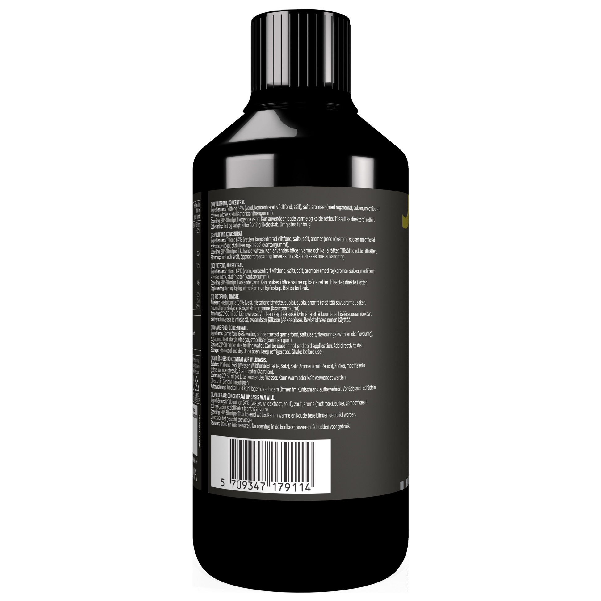 Wildfond 64% (Wasser, Wildfondextrakte, Salz), Salz, Aromen (mit Rauch), Zucker, modifizierte Stärke, Weingeistessig, Stabilisator (Xanthan)